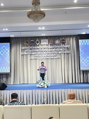 นางมุกดา หลิมนุกูล พัฒนาการจังหวัดภูเก็ต มอบหมาย นายอธิวัฒน์ ทองพราว นักวิชาการพัฒนาชุมชนปฏิบัติการ พร้อมด้วยผู้ประกอบการ OTOP จังหวัดภูเก็ต ได้แก่ ยิ่งบาติก และบาติกเพ้นท์ เข้าร่วมประชุมวิชาากร Symposium การพัฒนาองค์ความรู้การพัฒนาผลิตภัณฑ์สู่สากล ประจำปี 2568 (Thai Textiles Trend Book Autumm/Winter 2025-2026)
